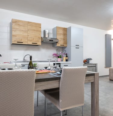 La cucina completamente attrezzata ti permetterà di preparare piatti locali o i tuoi preferiti, circondato dai profumi della campagna pugliese.