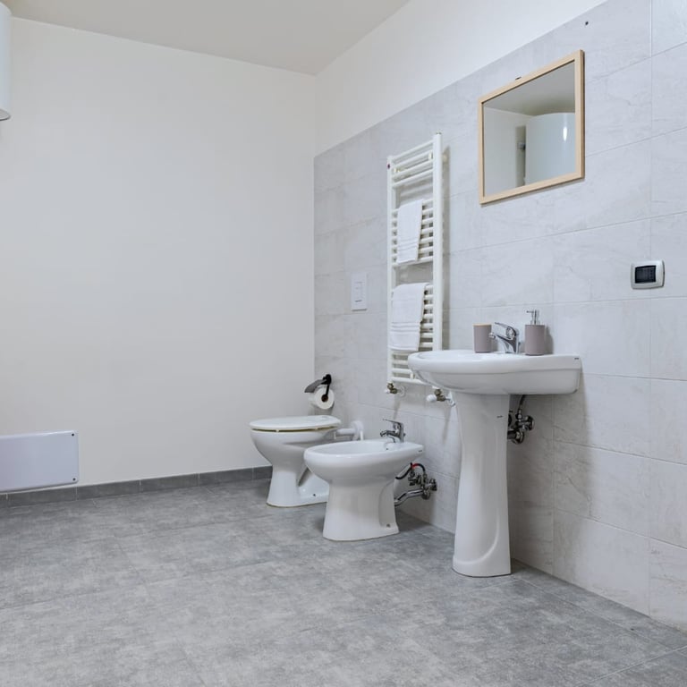 I due bagni moderni, di cui uno con zona lavanderia, rispondono a ogni esigenza quotidiana.